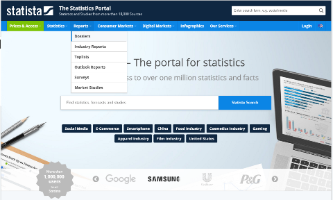 A statistics website that offers free and paid access to more than 60k topics from 21 market segments. Statista provides insights on business, media, financials, consumer behavior and more.
